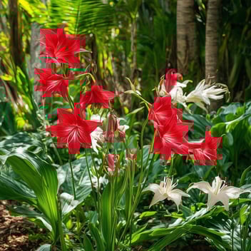 Known for their large, trumpet-shaped blooms in vibrant reds, pinks, and whites, Hippeastrums are a favorite among SEQ gardeners. They thrive in well-draining soil and full sun to partial shade. Plant the bulbs with the neck exposed above the soil surface in late winter to early spring for a stunning display.
