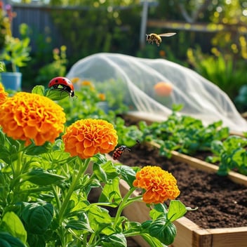Flowers like nasturtiums and herbs such as basil attract predatory insects, including ladybugs and hoverflies, which prey on common garden pests.