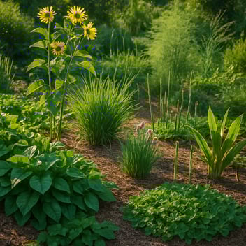 Stack your garden vertically: low‑growing edible carpets beneath fruit trees or shrubs — above them, taller plants. Groundcovers serve as living mulch, retaining moisture and enriching soil under deeper‑rooted plants.