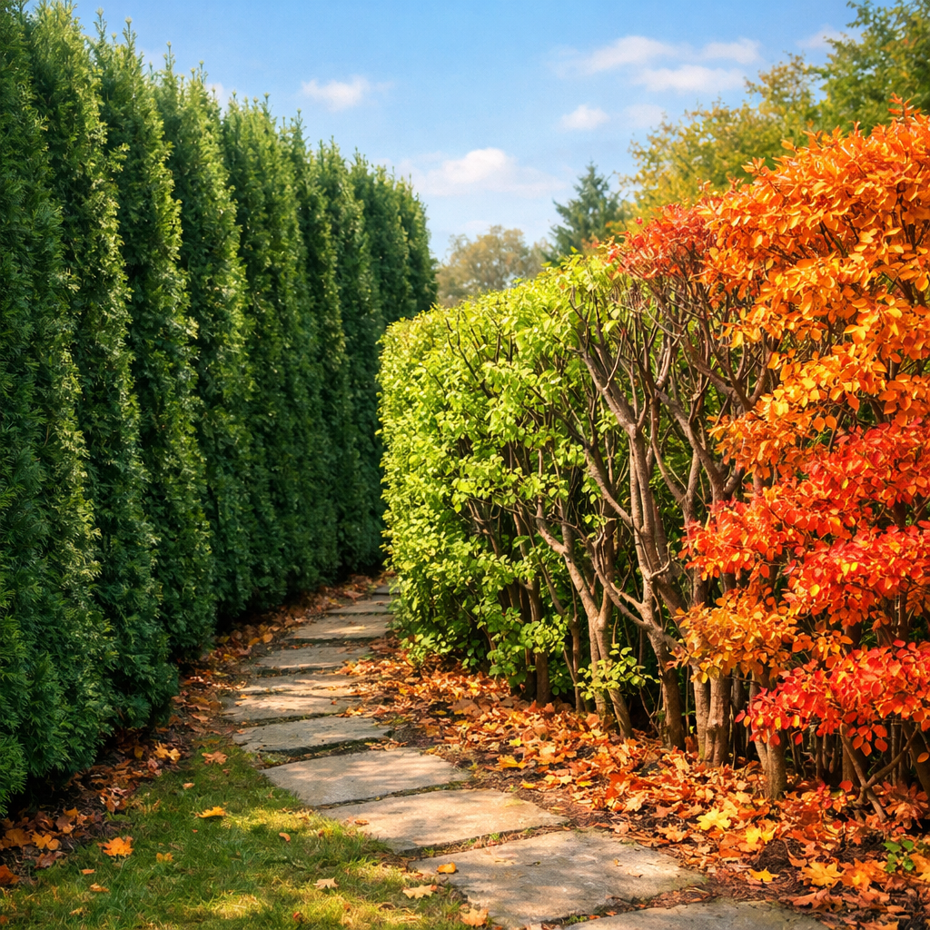 Combine evergreen hedges as the structural backbone with deciduous hedges as seasonal highlights. Place evergreens along boundaries. Introduce deciduous hedges near entertaining areas or windows where seasonal light matters.
