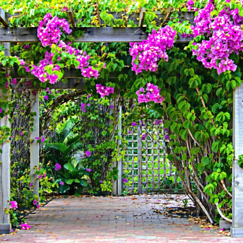 Arbors and Arches: Curved structures that create inviting passageways, ideal for vigorous climbers like Wisteria.