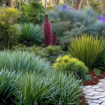 Incorporating ornamental grasses introduces movement and texture to the garden. Varieties like Blue Fescue (Festuca glauca) and Japanese Forest Grass (Hakonechloa macra) offer unique colors and forms. These grasses are generally low-maintenance, requiring only annual trimming to remove old growth.