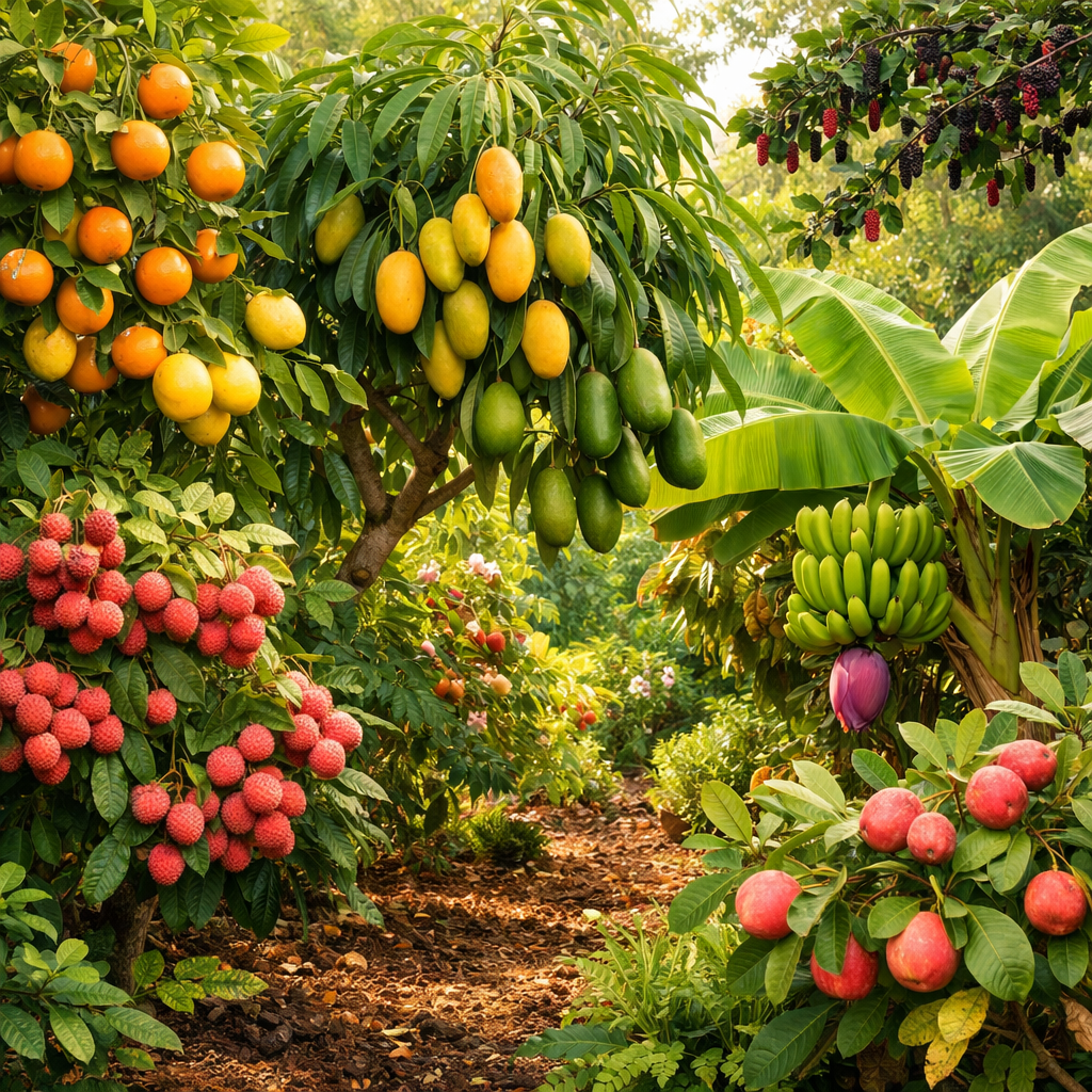 A subtropical garden is a place of generosity. Warmth lingers. Rain visits often. Growth is not hesitant—it is exuberant. In such a climate, fruit trees do not merely survive. They flourish. They swell with sweetness, colour, and vitality, offering harvests that feel almost effortless.