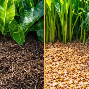 Inorganic options like gravel or landscape fabric are suitable for areas where long-term weed suppression is desired. However, in hot climates, caution is advised as materials like rocks can absorb and radiate heat, potentially increasing soil temperatures.